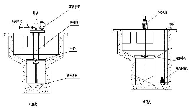 螺旋線加速沉降,同時有機物在水流的作用下,隨水流漂走,沉入池底的砂經空氣或泵提升,與少量污水進入砂水分離器中進