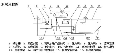 QF 氣浮機主要由氣浮池、溶氣罐、加壓泵、刮沫機等組成。其原理利用溶氣裝置產生的溶氣水巾的微氣泡,與水中的微細懸浮顆粒粘合在一起,隨氣泡浮升到水面,形成浮渣,使水中微細懸浮顆粒得到去除。工藝的主要設計參數包括停留時問、絮凝時間、表面負荷率、回流比、溶氣壓力等。氣浮池的水力停留時間大致為5~35 min;表面負荷率為5~8 m3/(m2·h)。優化溶氣壓力和回流比能夠釘效地降低水廠的運行和維護費用。此外由于停留時間短,氣浮池的基建費用比沉淀池少,但卻能獲得更好的處理效果。